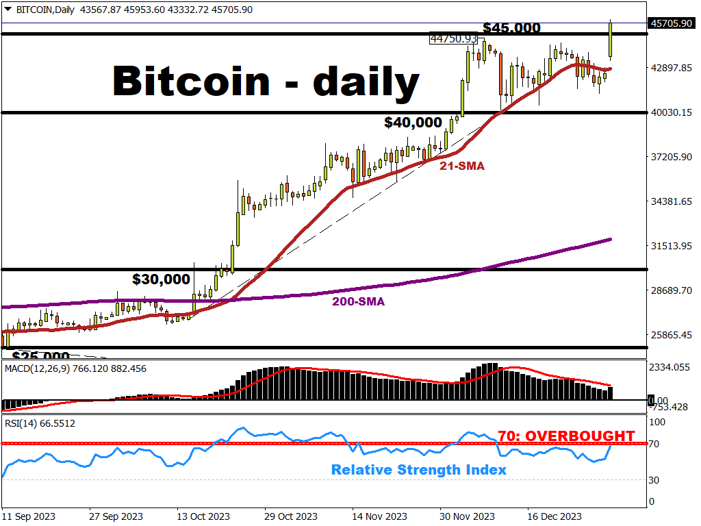 The world’s largest cryptocurrency more than doubled (+157%) in price in 2023, and is already taking off at the onset of the new year.