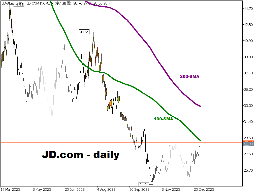 That suggests that JD.com shares could hit $43.56 by end-2024.