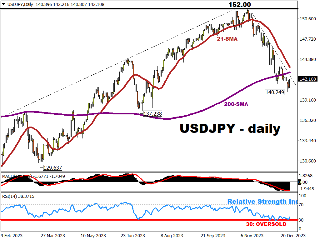 Those BoJ hikes may push USDJPY back towards its mid-2023 lows around 137, perhaps by end-June 2024.
