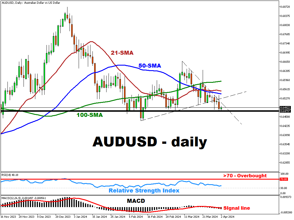 Break below key support level may signal additional downside risk. Meanwhile, the 50-period SMA acts as a critical resistance level – target level for the AUD bulls.