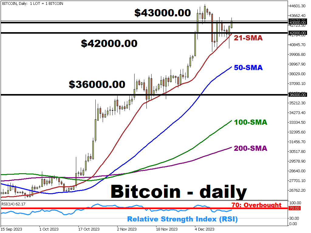 BTCUSD bulls have managed to push BTC above $43000 ahead of SEC’s possible Bitcoin ETF approval in early 2024.
