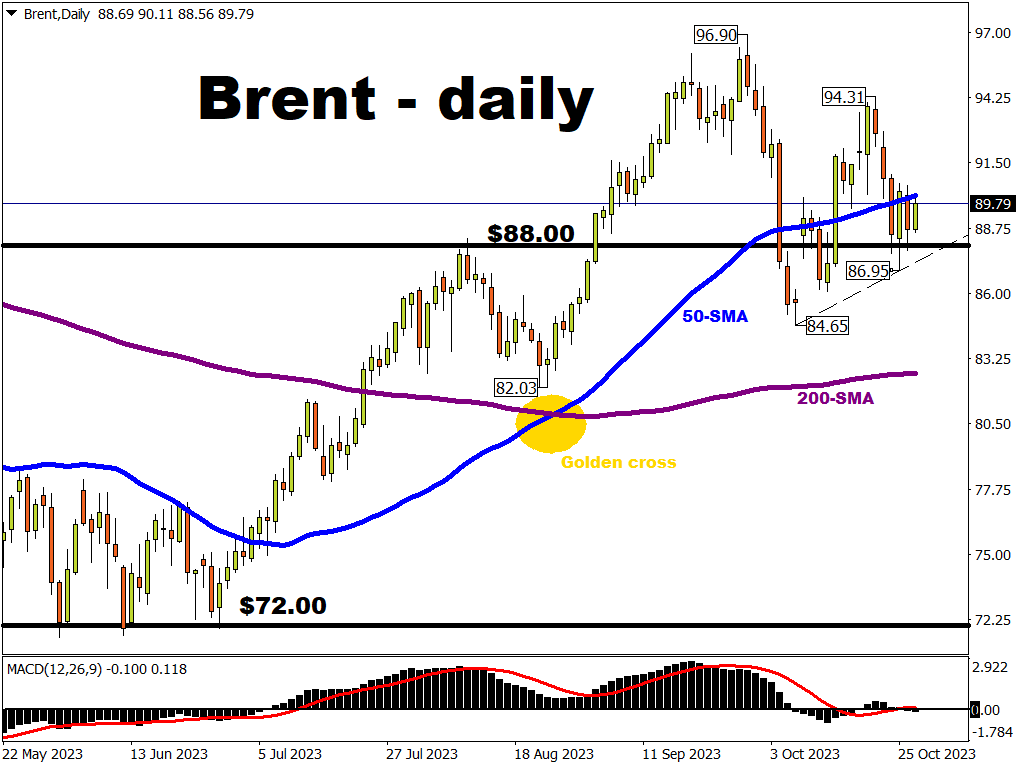At the time of writing, Brent is now testing its 50-day simple moving average (SMA) for immediate resistance, with immediate support lying around the $88/bbl zone.