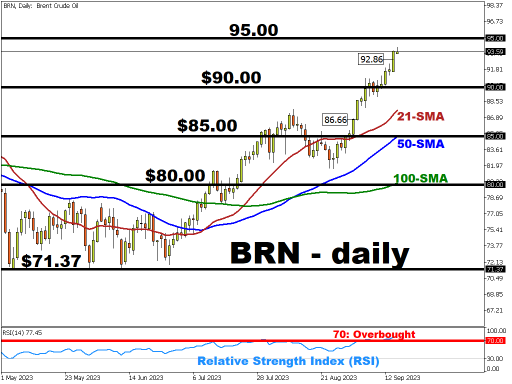 Oil prices continue to rise reaching fresh 2023 highs at $94.08/bbl.