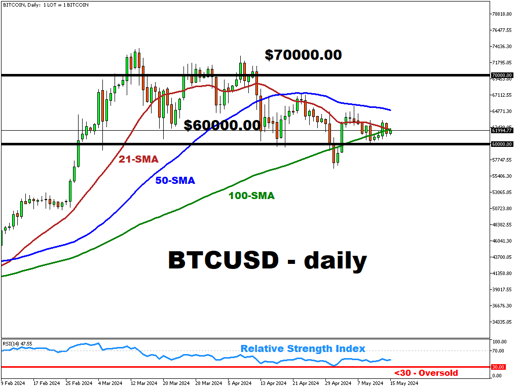 For now, bitcoin bulls are trying hard to keep the current price above yesterday's close at ~$61,158.83.