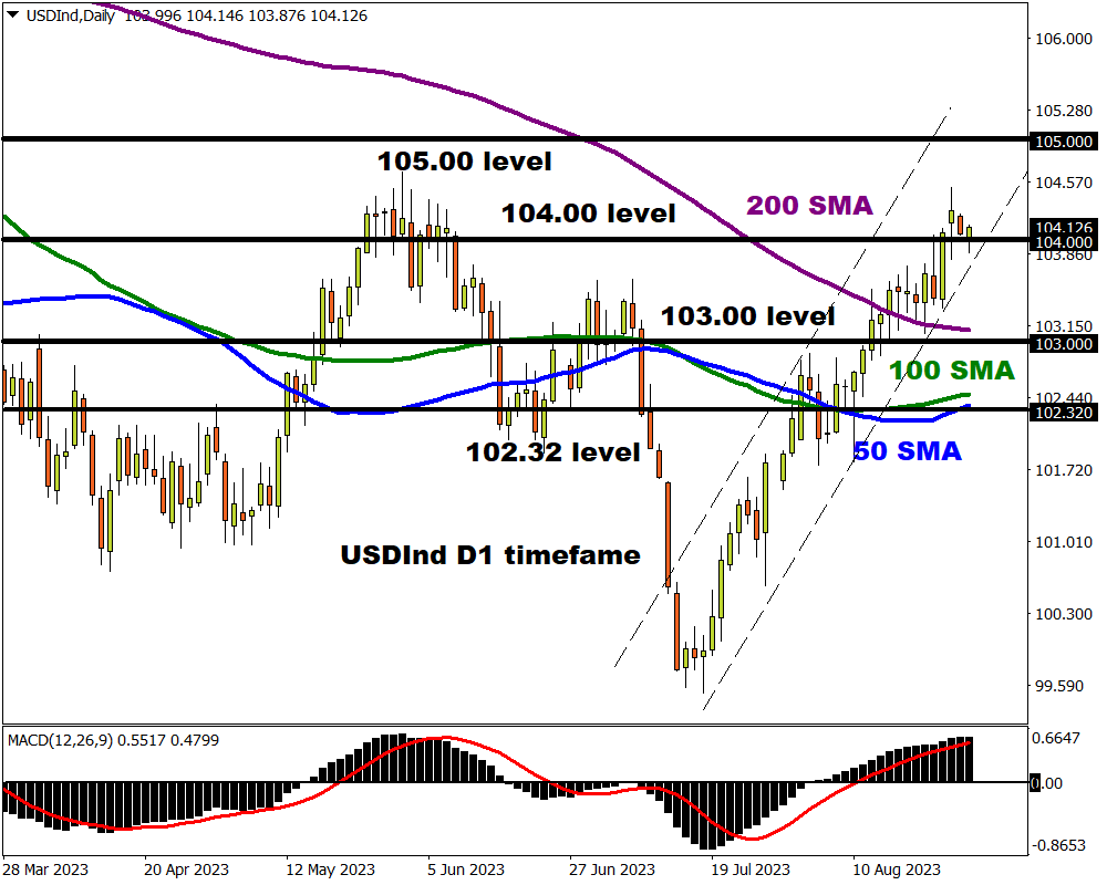 However, the potential market shakers could be Thursday’s PCE inflation data and the NFP report on Friday. The Fed’s preferred inflation gauge, the Core Personal Consumption Expenditure will be closely scrutinised by investors for more signs of inflationary pressures cooling. Regarding the August NFP report, markets expect the US economy to have added 170,000 jobs in August with the unemployment rate unchanged at 3.5%. Ultimately, a strong set of economic releases may strengthen the argument around the Fed raising rates one more time this year, especially after Powell’s hawkish remarks last Friday.