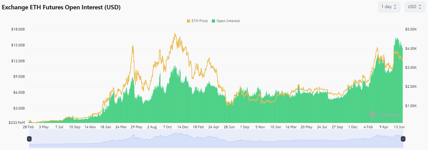 • Open interest in ETH futures reaches $14.5 billion