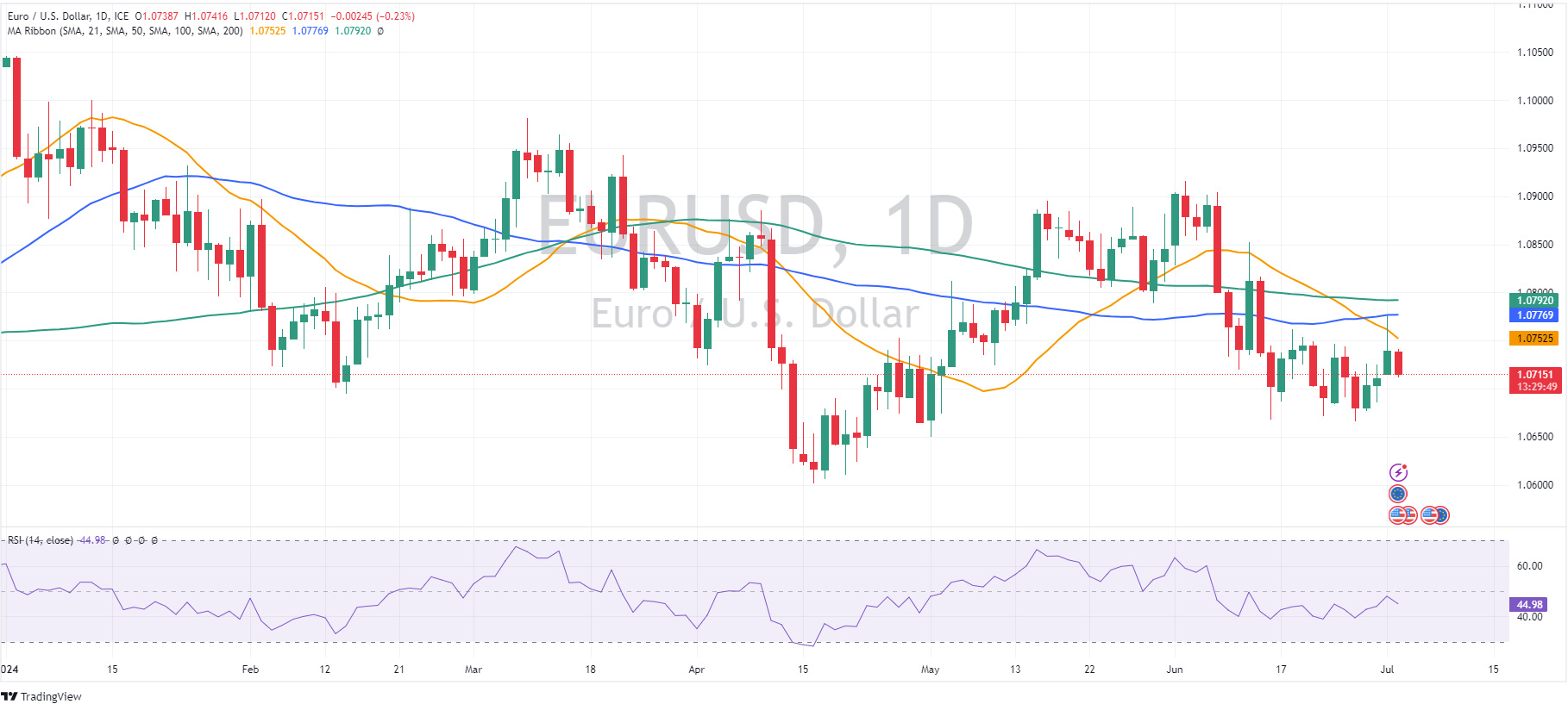 The EURUSD briefly traded below yesterday's opening level of 1.07155 as markets prepare for important macroeconomic releases on both sides of the Atlantic.