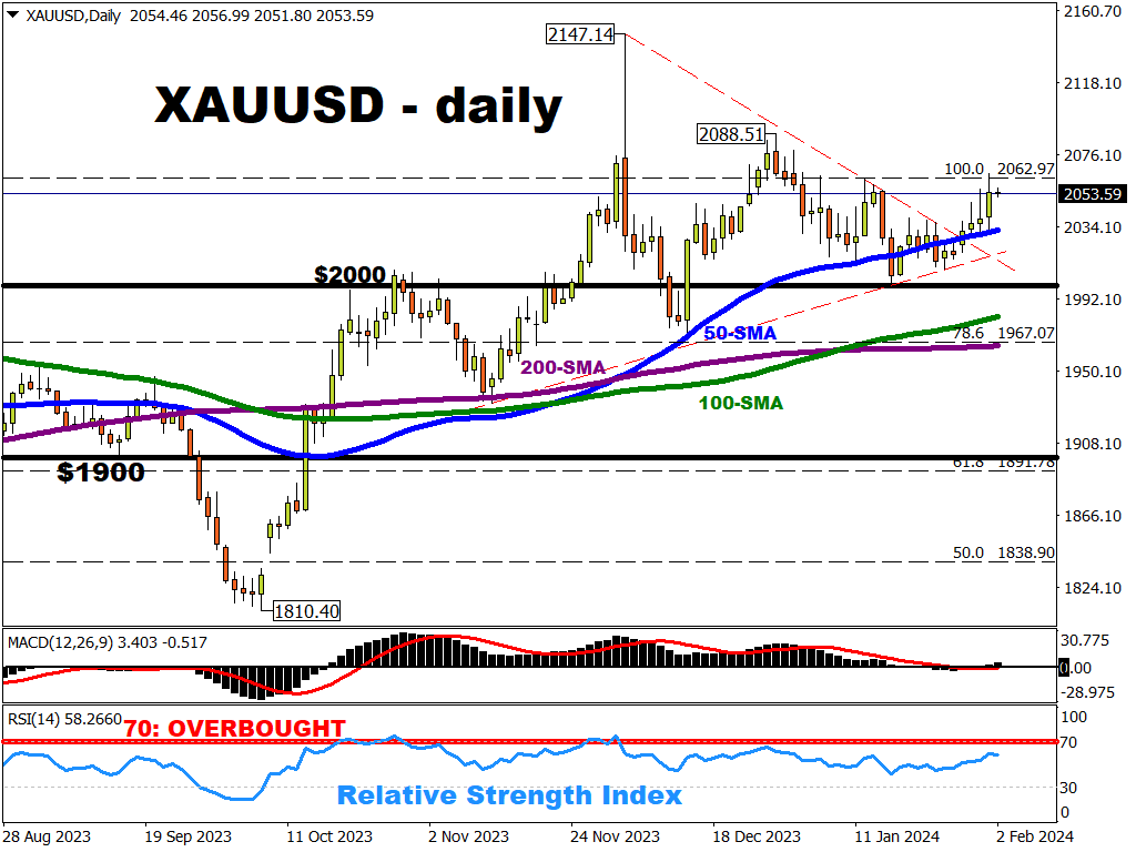 The May 2023 peak of $2062.97 has now thwarted gold's attempts to break higher on 3 different occasions so far this year, with the latest instance occurring yesterday (Thursday, February 1st).