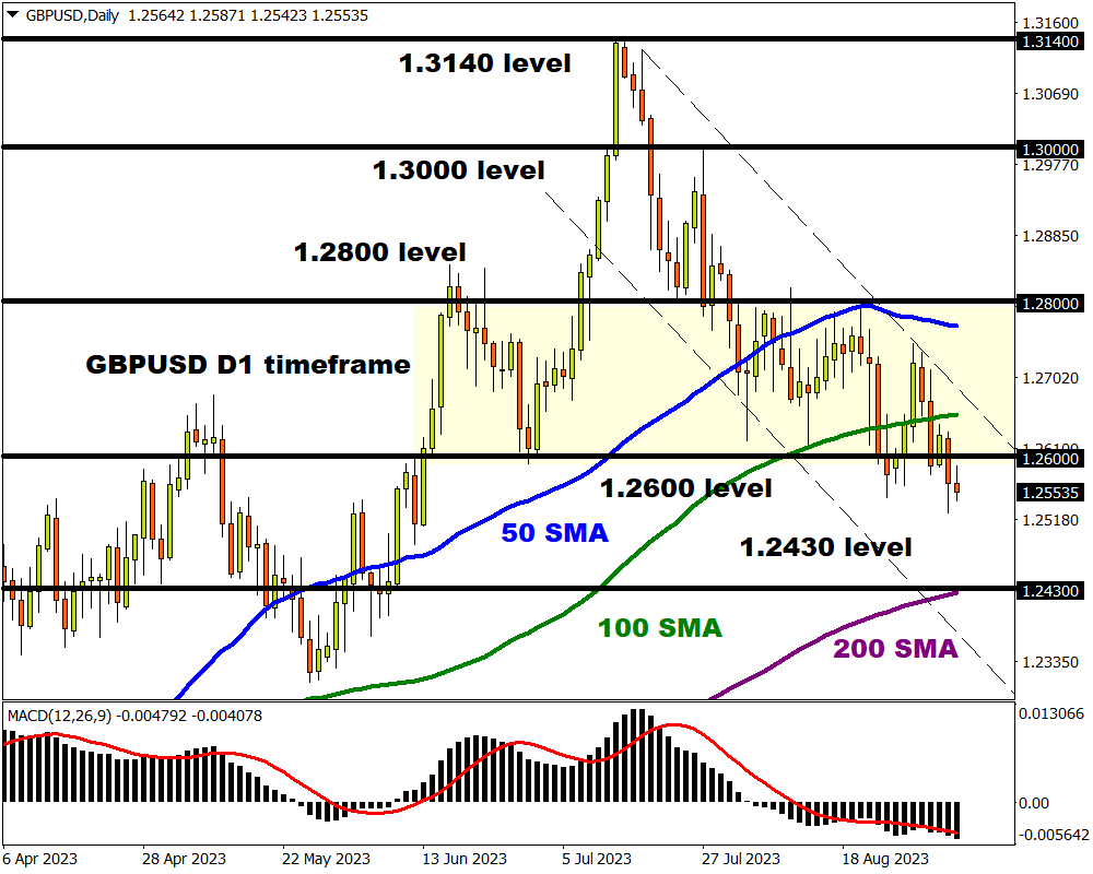 The recent breakdown below 1.2600 may inspire a further selloff towards the 200-day SMA at 1.2430. Technical indicators remain in favour of bears with prices trading below the 50 and 100-day SMA while the MACD trades below zero. Should prices push back above 1.2600, the GBPUSD may find itself trapped within the previous range with resistance around 1.2800.