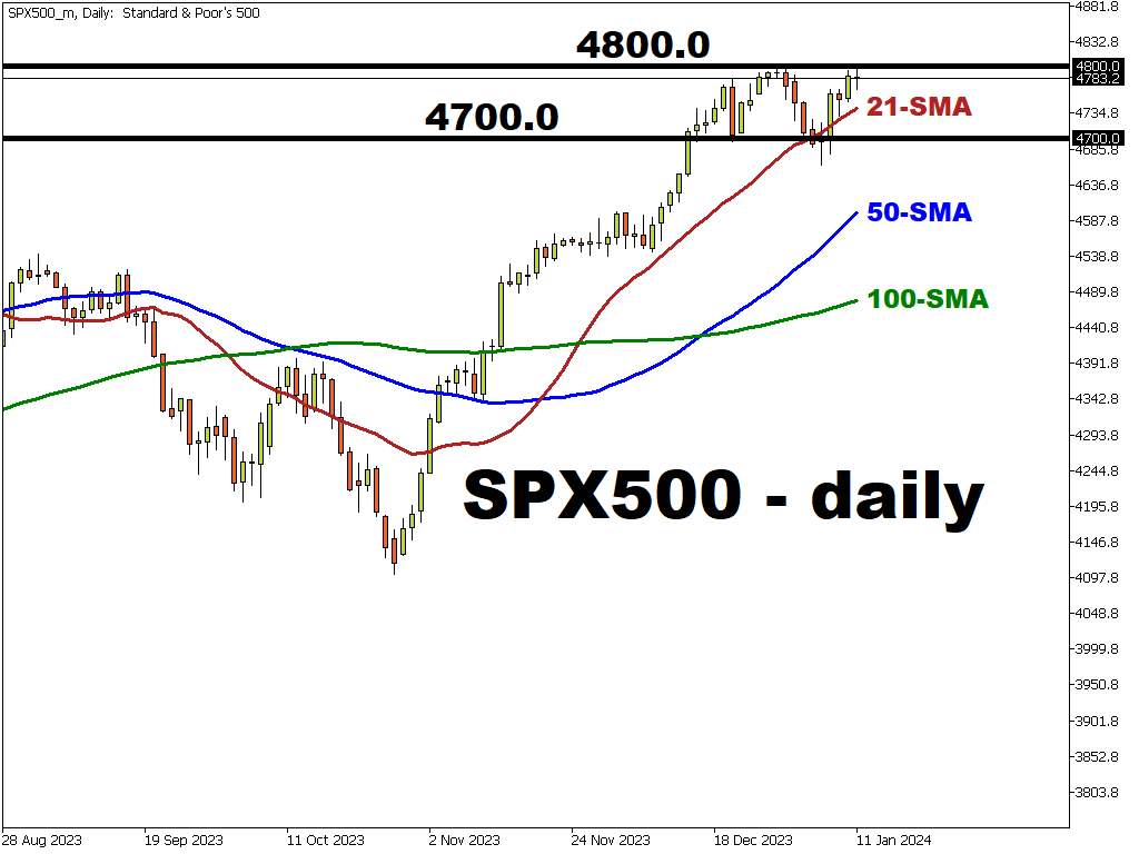 The S&P500 bulls are now trying to keep the markets close to the 4800 psychological level with a 21-period SMA set to provide critical support in case the SPX500_m bears try to regain the initiative.