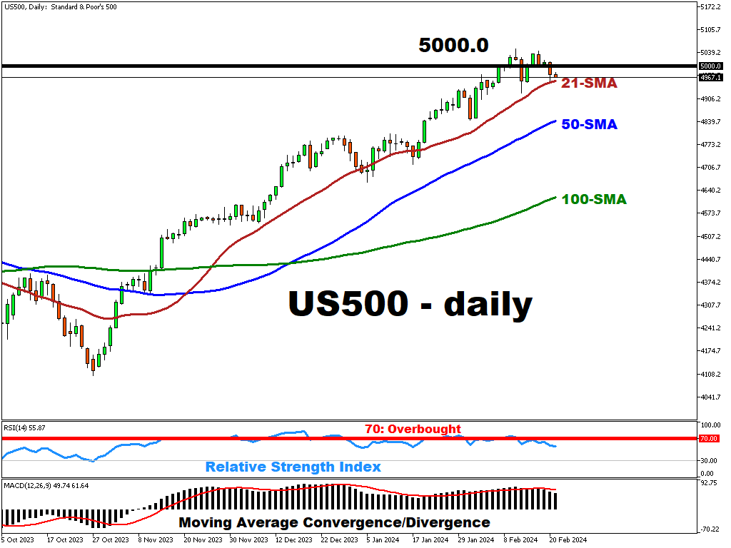 S&P 500 bulls are struggling to rebound after sliding below $5000 psychological level amid the upcoming Federal Open Market Committee (FOMC) minutes and NVIDIA earnings.