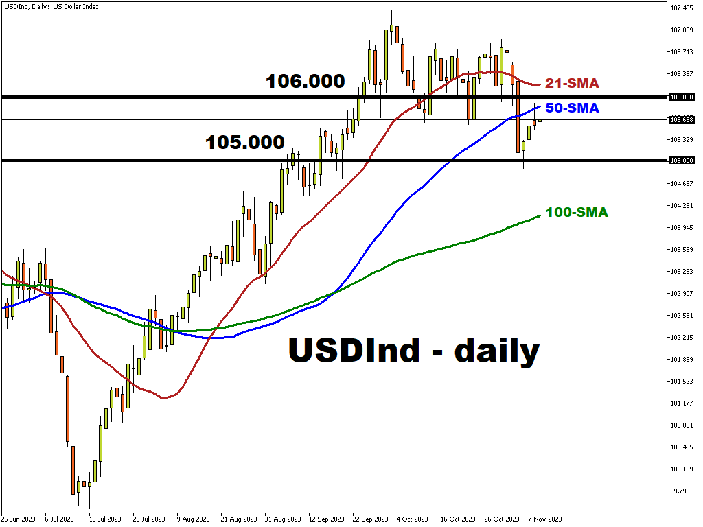- But if he joins the ranks of officials emphasising the ongoing inflation battle and leaving all options open for the December FOMC meeting, then the dollar index could edge up to recent highs.