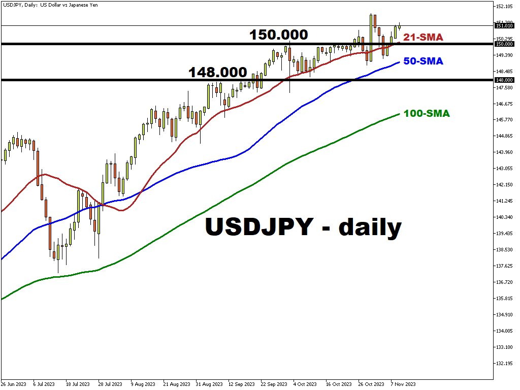 USD/JPY trades above 151