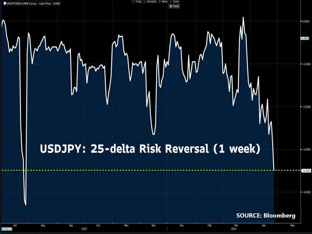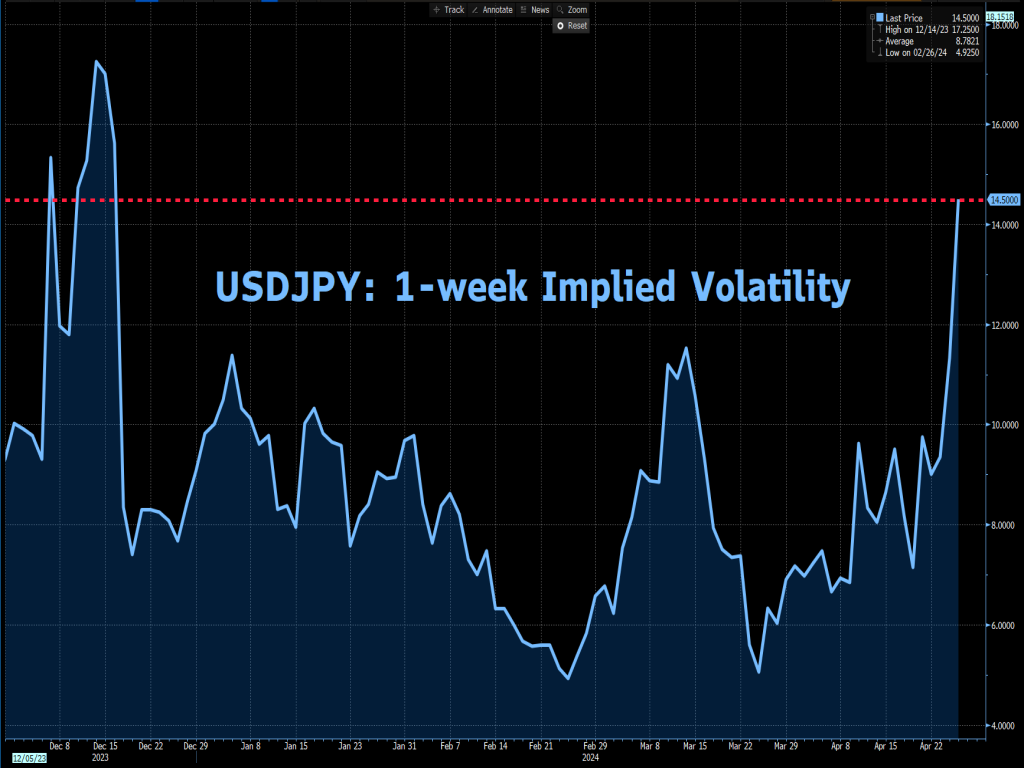 No surprise that markets are forecasting that USDJPY will see its most-volatile one-week period so far in 2024!
