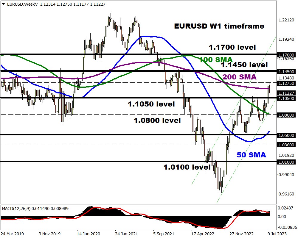 Zooming out into the weekly charts, prices remain in a bullish weekly channel. However, strong resistance can be found around the 200-week SMA. Should 1.1050 prove to be reliable support, this may provide a foundation for bulls to retest 1.1275 and beyond. Alternatively, a weekly close under 1.1050 may open a path back toward 1.0800.