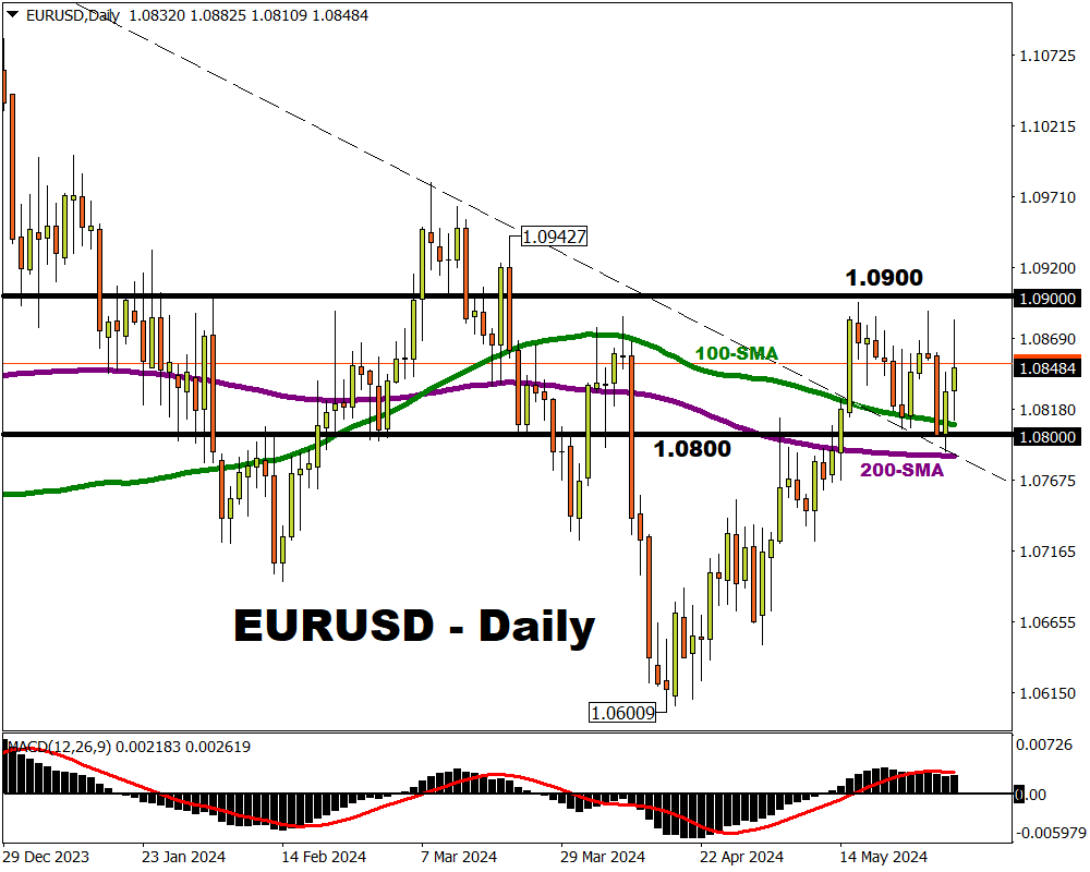 Of course, bulls will be hoping to push EURUSD back above 1.090 for the first time since March.