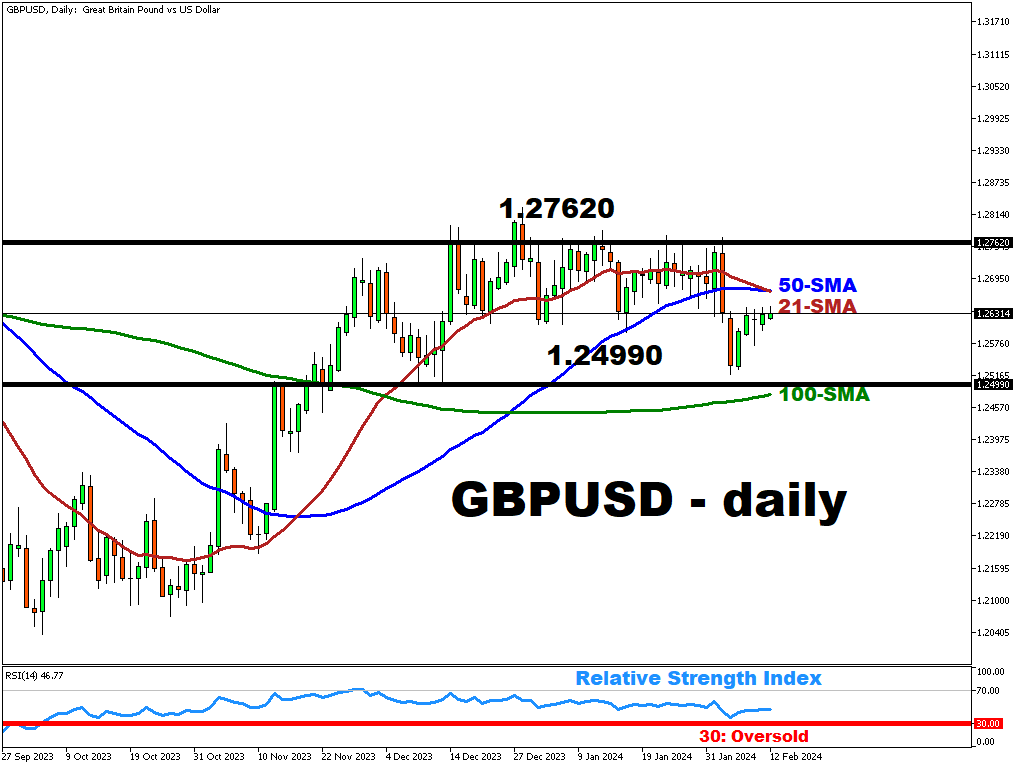 Higher-than-expected CPI figures could complicate plans for the BOE’s hopes for lowering interest rates, though could boost GBPUSD upwards and closer to its 50-day SMA.