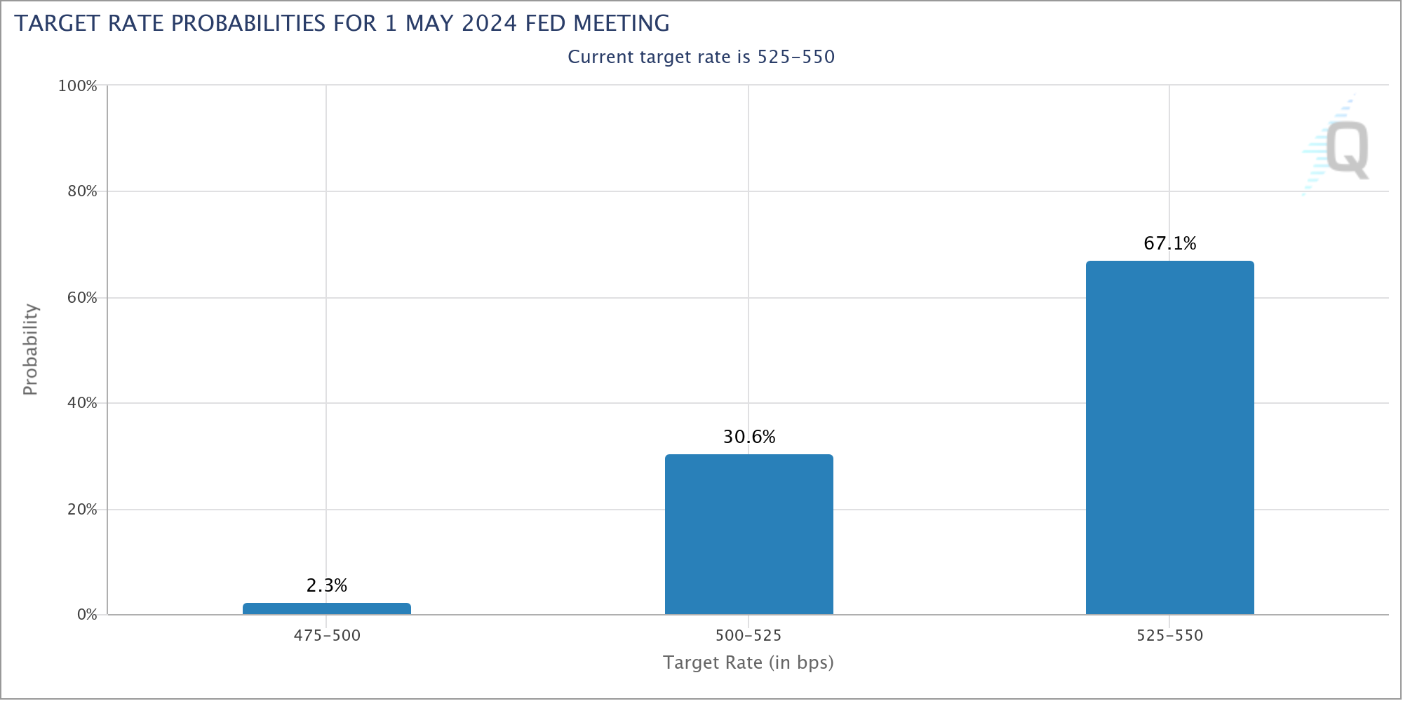 Markets are currently pricing in a 32.9% chance of a rate hike in May.
