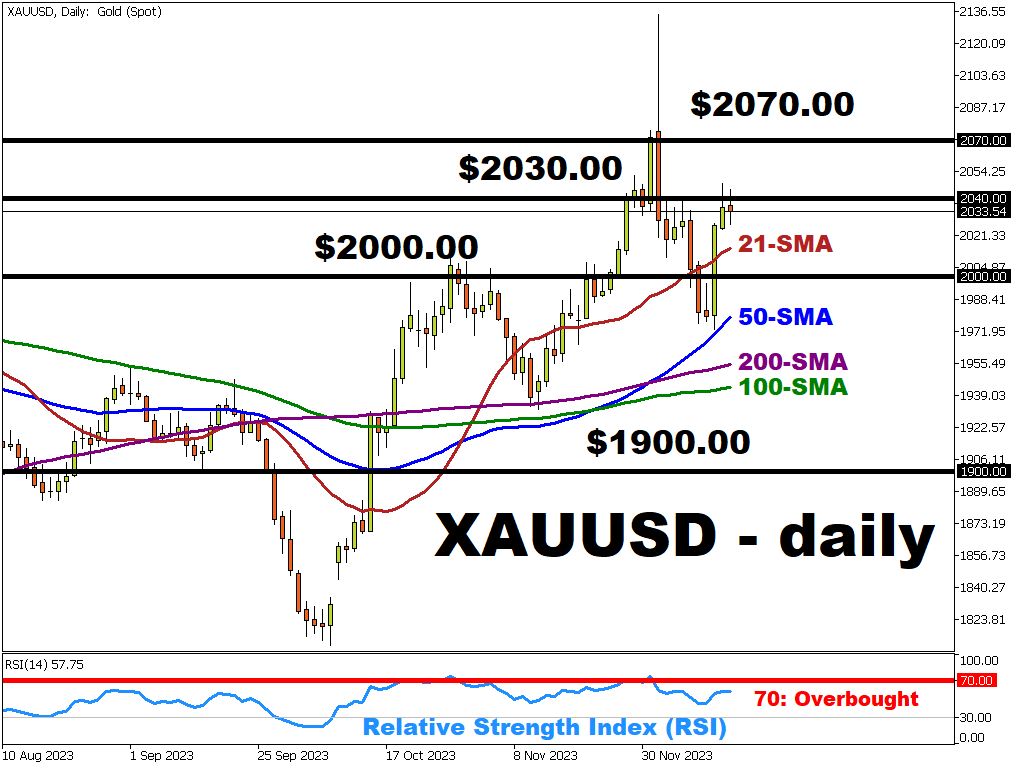 • The $2047.87 resistance may soon turn to be a strong support if gold bulls manage to retain the upward momentum