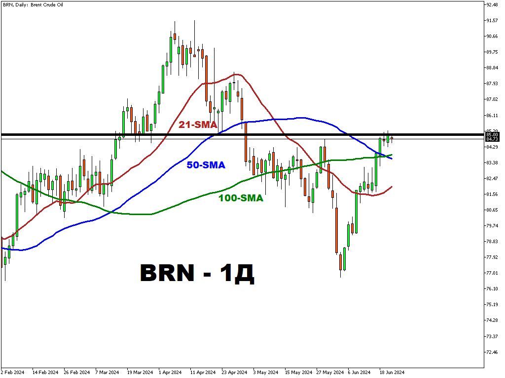 BRN консолидируется ниже уровня $85.00 на фоне потенциального сохранения процентных ставок на более длительный срок в США и Азии.